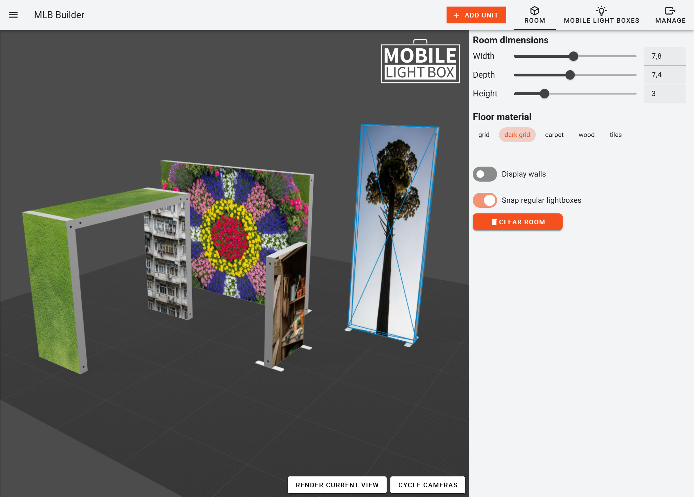 For a leading manufacturer of modular display systems (lightboxes), we developed a dynamic, web-based 3D configurator designed to eliminate guesswork and accelerate the sales process. This tool allows users and salespeople to intuitively design, plan, and visualize layouts, bringing complex concepts to life instantly.